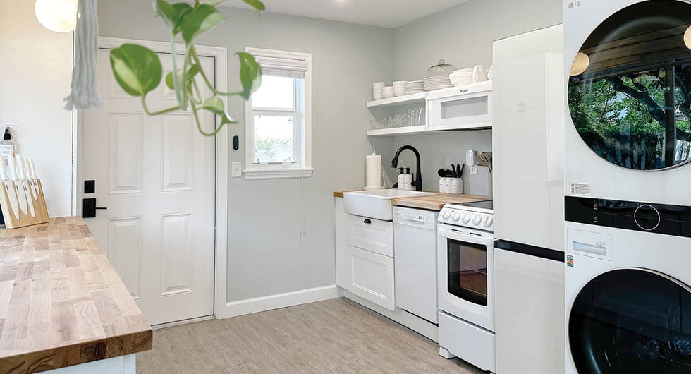 Yes, all cottages have full-size stack units in the kitchen. Free & Clear laundry detergent is provided.